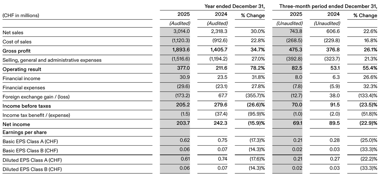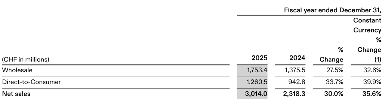这个数字依然不低,但较分析师预期的37亿瑞郎缺口将近3亿,相当于被“蒸发”掉了大约三个季度的超额增长。更刺眼的是,这意味着增速将从低于2025年的增长。