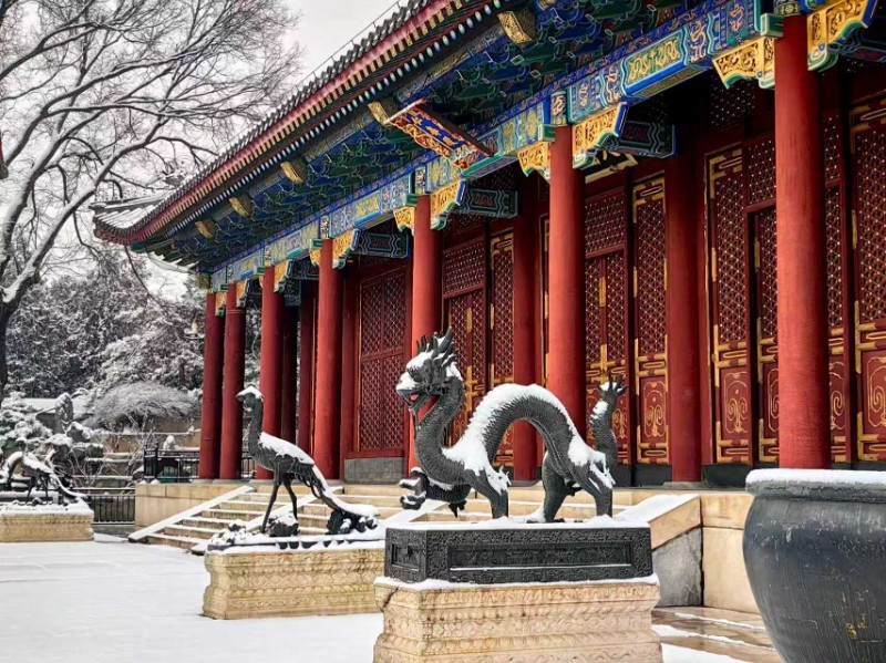 今日恰逢惊蛰节气,一位摄影爱好者说:“惊蛰下雪,在老北京话里叫‘倒春寒’,但落在颐和园,就成了‘春雪润颐和’。雪让这里的每一处细节都慢了下来。”