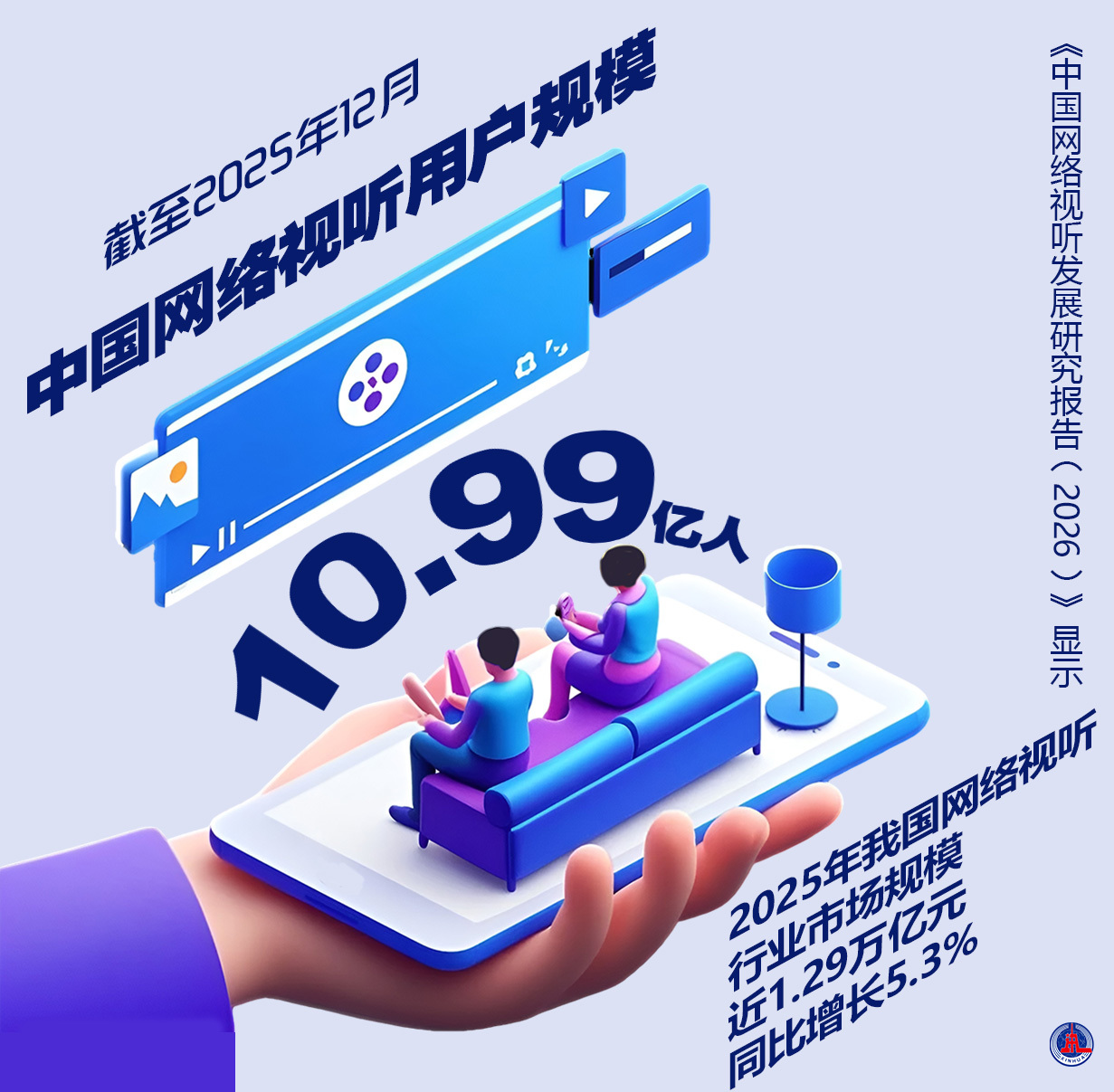 4月15日在成都发布的《中国网络视听发展研究报告(2026)》显示,截至2025年12月,中国网络视听用户规模达10.99亿人,稳居各互联网应用首位,成为国内渗透范围最广、覆盖人群最多的数字服务载体,彰显了行业极强的发展韧性与对用户的强劲吸引力。